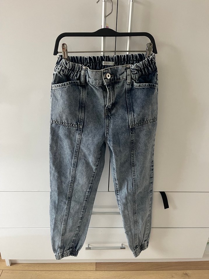 Gri batik desenli, bağcıklı bel detaylı, rahat kesim kadın kot pantolon, günlük sokak stili için uygundur.