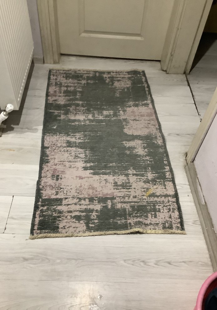 Bu bohem tarz halı, gri batik desenli ve yumuşak dokuludur, her odaya sanatsal bir dokunuş katar.