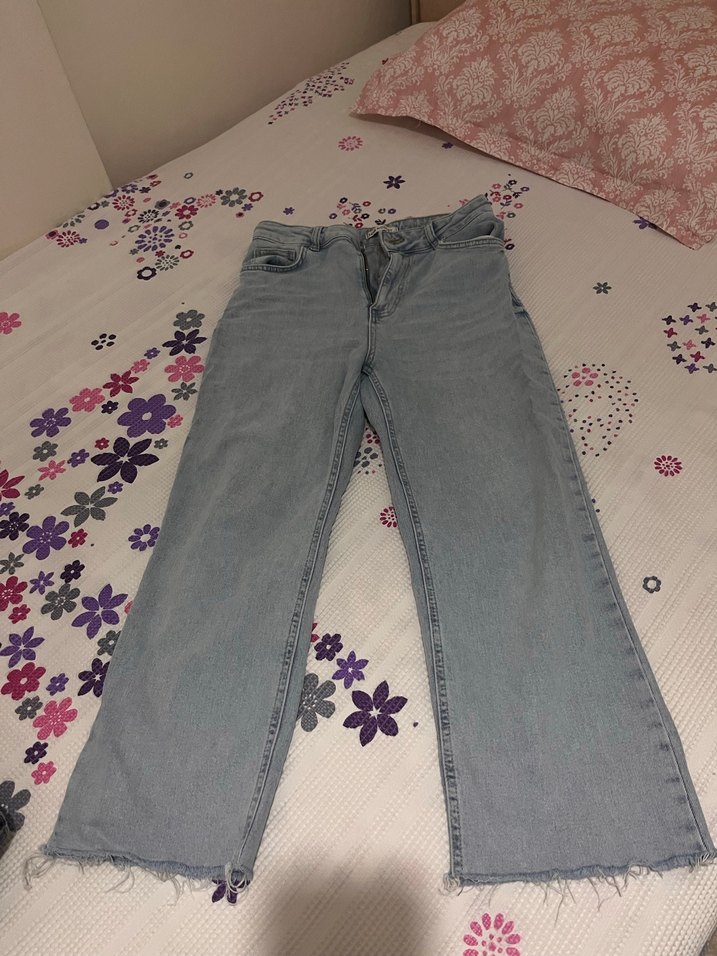 Bol kesim, düğmeli ve midi boy gri batik desenli kadın jean. Denim kumaştan, salaş ve sokak stiline uygun. Arkasında çok ufak bir leke var. Çok belli olmuyor bana artık küçük geldiği için satıyorum fiyatta indirim yaparım