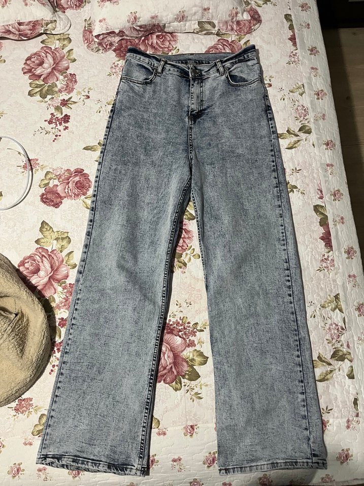 Gri batik desenli, bol kesim, normal boyda kadın kot pantolon, dantel detaylı, gündelik sokak stili için uygun.