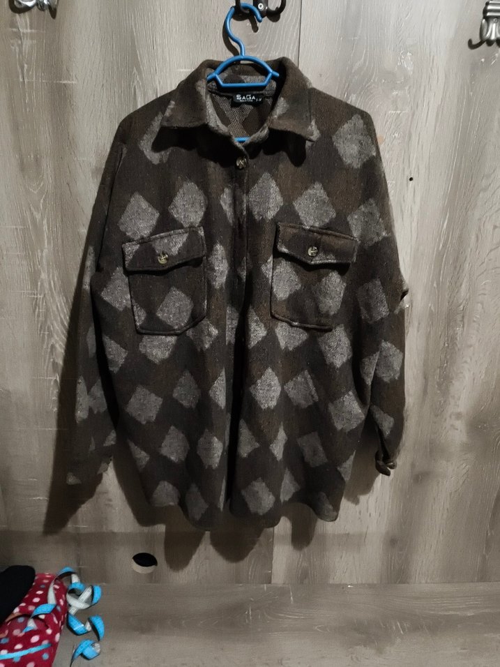 Düğmeli, gri batik desenli kadın gömleği, uzun kollu ve notched lapel yakalıdır. Sentetik kumaştan üretilmiş, bol kesim ve günlük sokak stili için uygundur.
