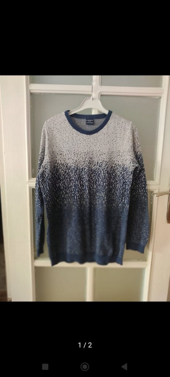 12-13 yaş Gri tonlarda batik desenli, yuvarlak yaka ve uzun kollu erkek triko kazak. Rahat kesimli ve yumuşak sentetik kumaştan, günlük sokak stili için uygun.