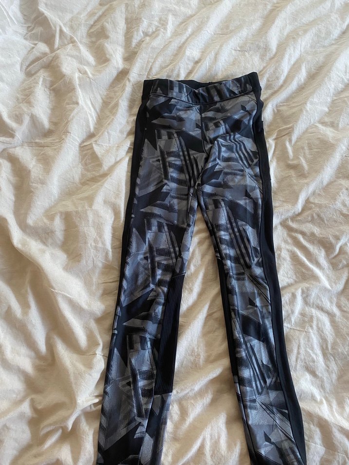 Gri batik desenli, esnek bel bantlı, normal boy kadın tayt. Spor ve sokak modasına uygun, şık ve modern tasarım. ♀️