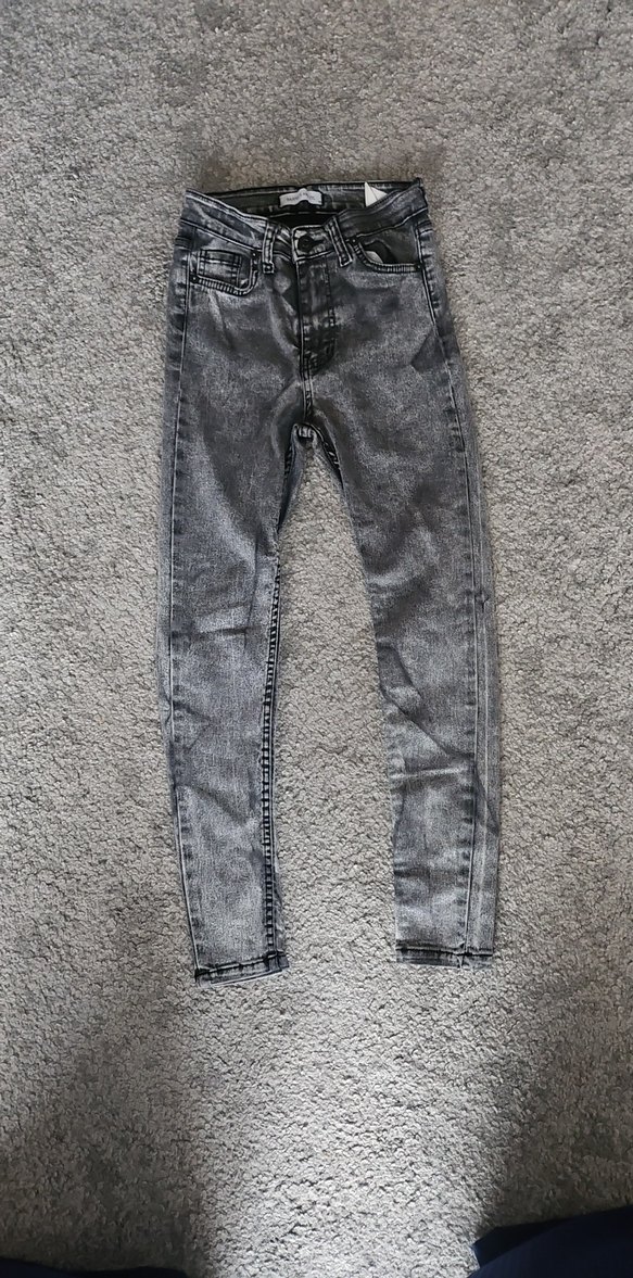 Yumuşak denim kumaştan, gri batik desenli, dar kesim kadın pantolon, günlük sokak tarzı için zahmetsiz şıklık sunar.