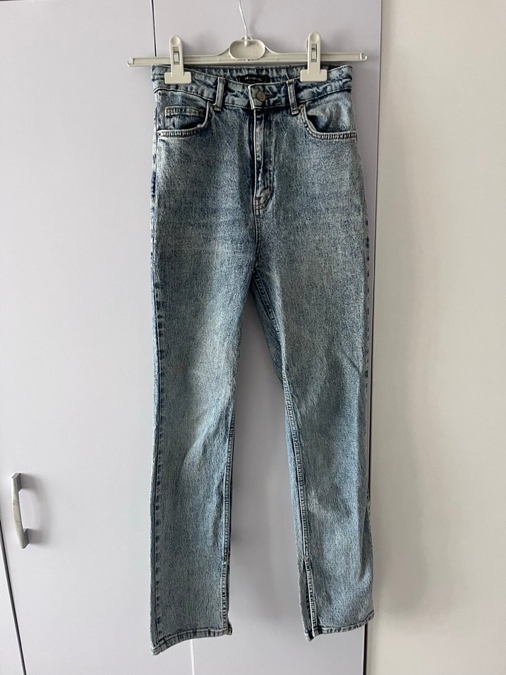 Gri tonlu batik desenli, kemerli ve dar kesim kadın kot pantolon, günlük sokak stili için uygundur.