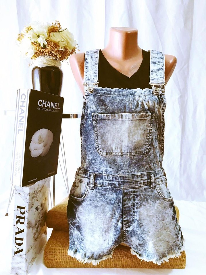 (M) MAVİ TAŞLANMIŞ CEP DETAY ŞIK SPOR TİWİL DENIM KOT ŞORT TULUM