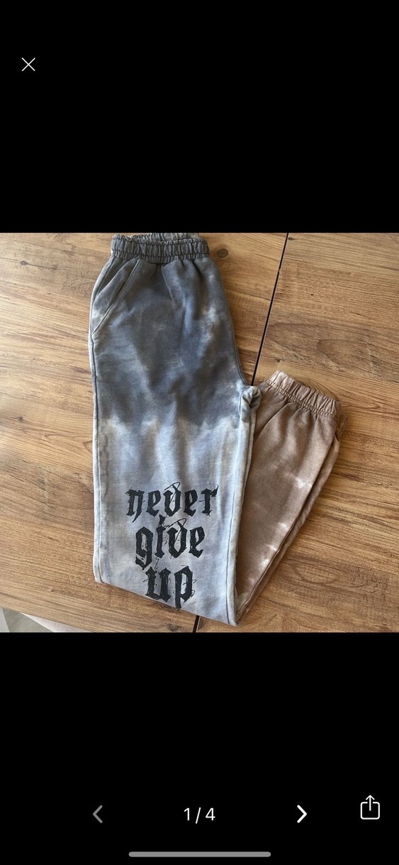 Gri batik desenli, bel detaylı, çocuk eşofman. 'Never give up' yazılı, midi boy, rahat ve günlük kullanıma uygun. ♀️