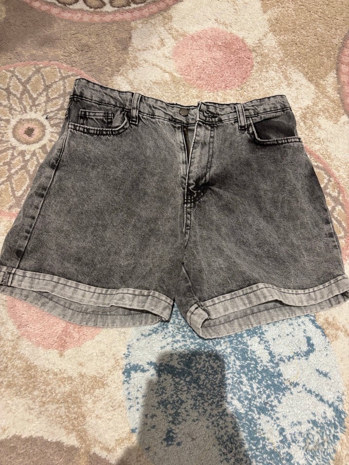 Gri batik desenli kot şort, bol kesim ve kısa paça ile rahat ve şık bir günlük sokak stili sunar.