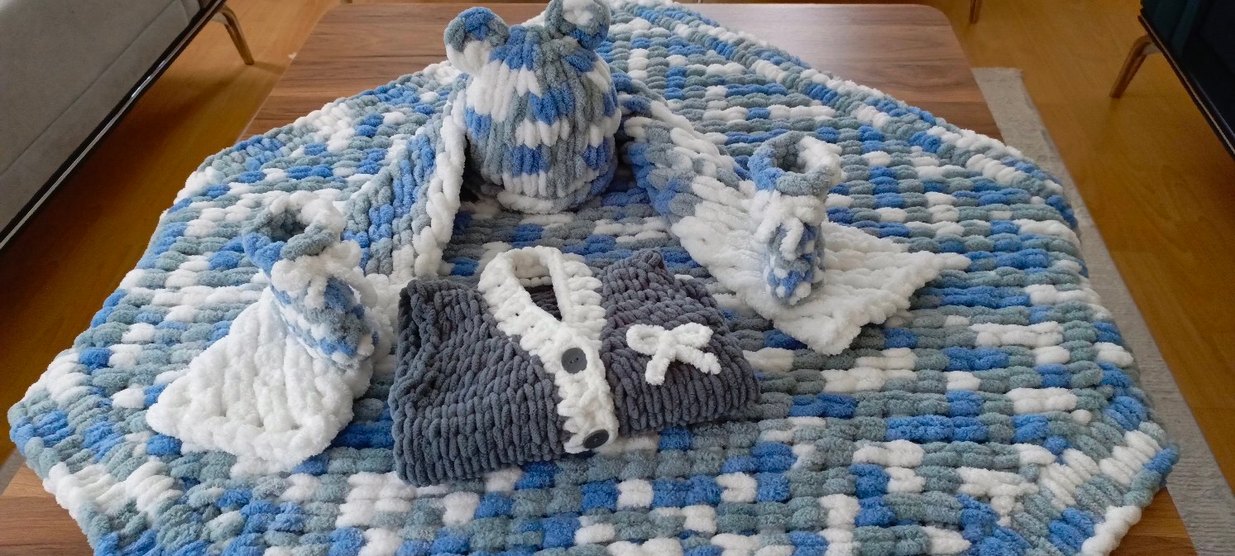 Gri Batik Desenli Örgü Çocuk Battaniyesi
