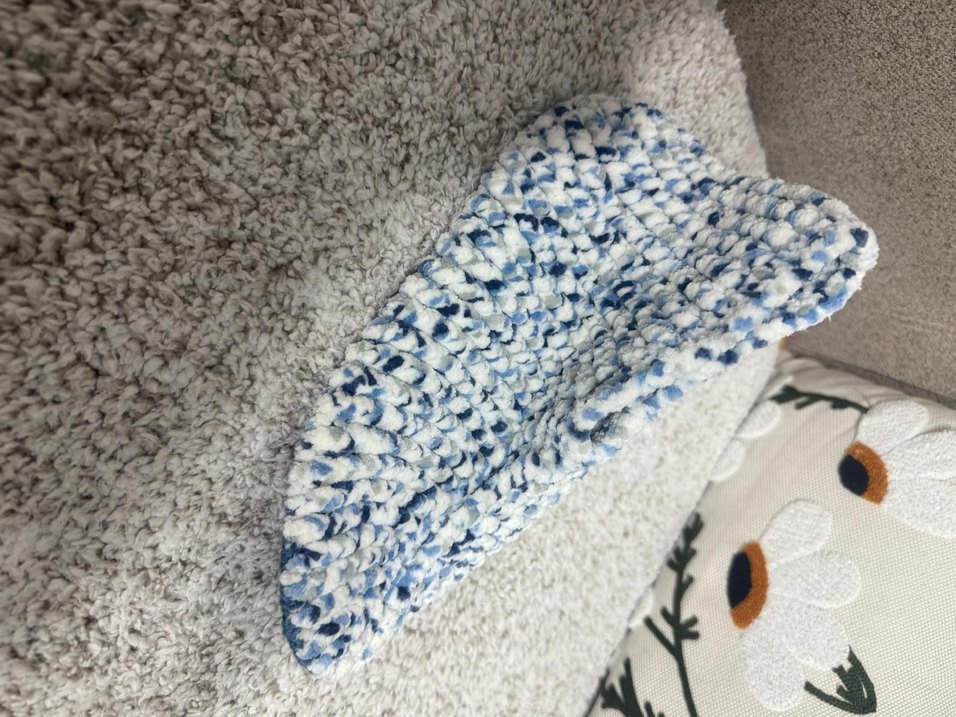 Gri ve mavi tonlarında batik desenli, dokulu ve yumuşak kumaştan yapılmış patik ürün numarası 38/39