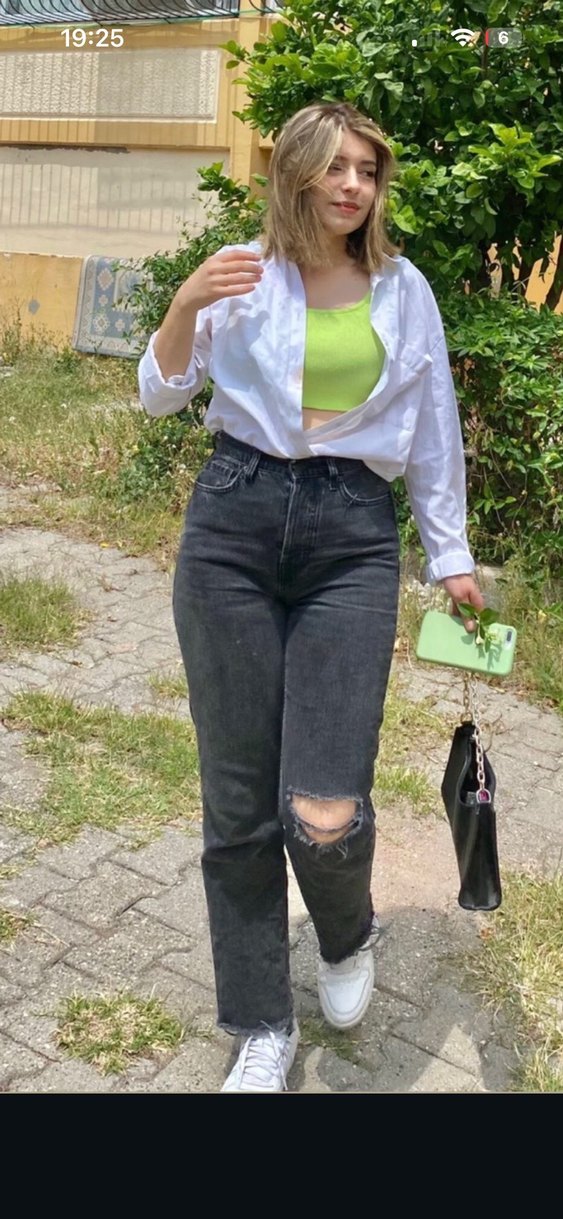 Salaş kesim, gri batik desenli denim kot pantolon, kemerli ve midi boy, günlük rahat sokak stili için uygundur.