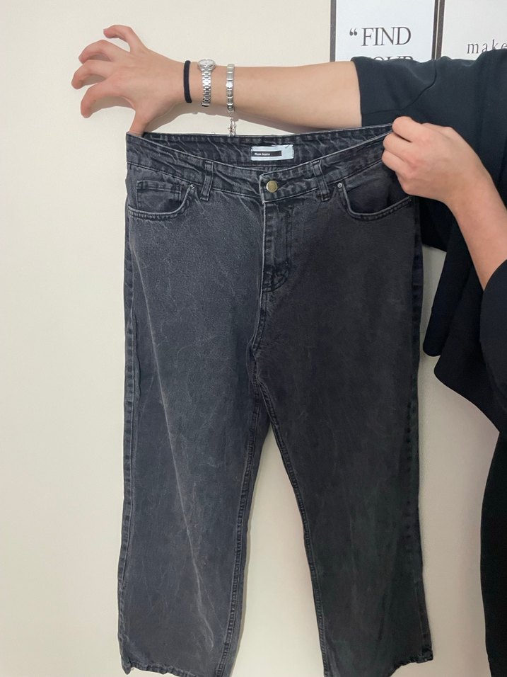 Gri batik desenli, salaş kesim denim kot pantolon. Midi boy, günlük kullanım için rahat ve şık bir seçenek.