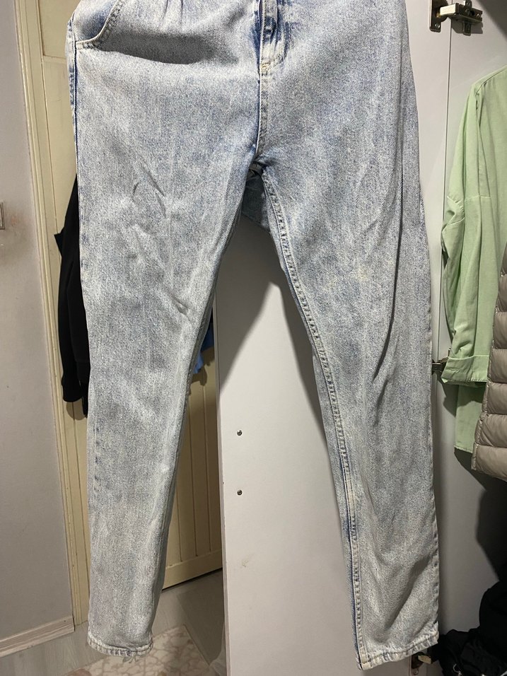Gri batik desenli, salaş kesim ve normal midi boyda kadın kot pantolon. Günlük kullanıma uygun rahat ve şık sokak stili. 2 kez giyildi.hiçbir sorunu yoktur