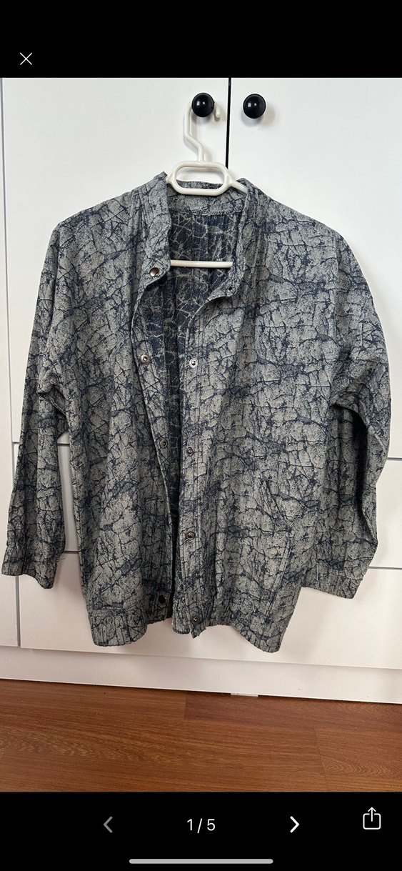 Gri keten gömlek, batik desenli ve düğmeli. Rahat kesimli, yakası kesimli ve uzun kollu, günlük sokak stiline uygun. 36-38 bedene uygundur