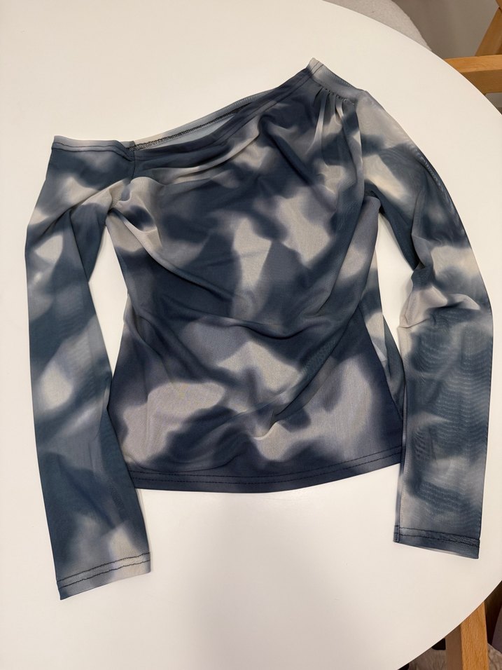 Gri Batik Desenli Uzun Kollu Straplez Bluz