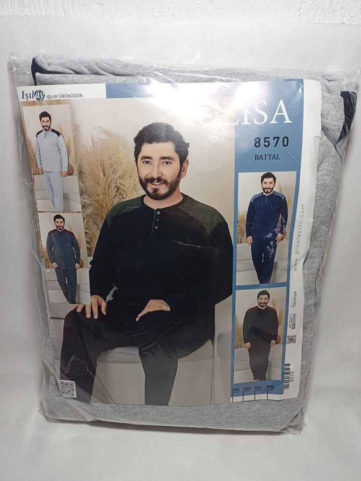Gri Battal Uzun Kollu Erkek Pijama Takımı 5XL