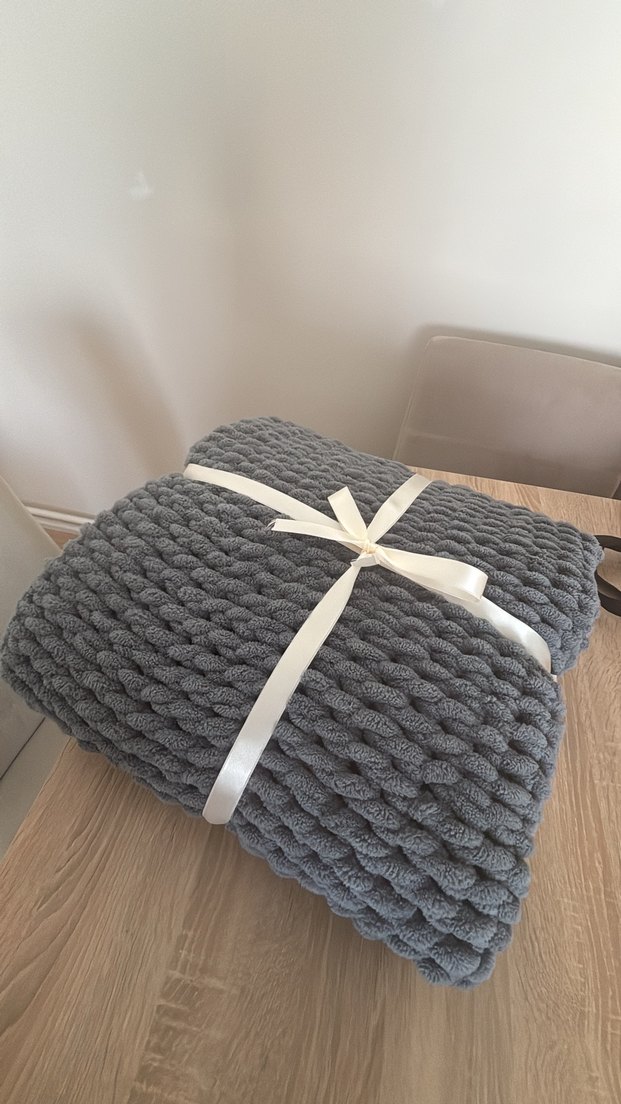 Yumuşak örgü kumaştan yapılmış gri çocuk battaniyesi, düz deseniyle sıcaklık ve konfor sunar. İstenilen renkte yapabilirim yazınız