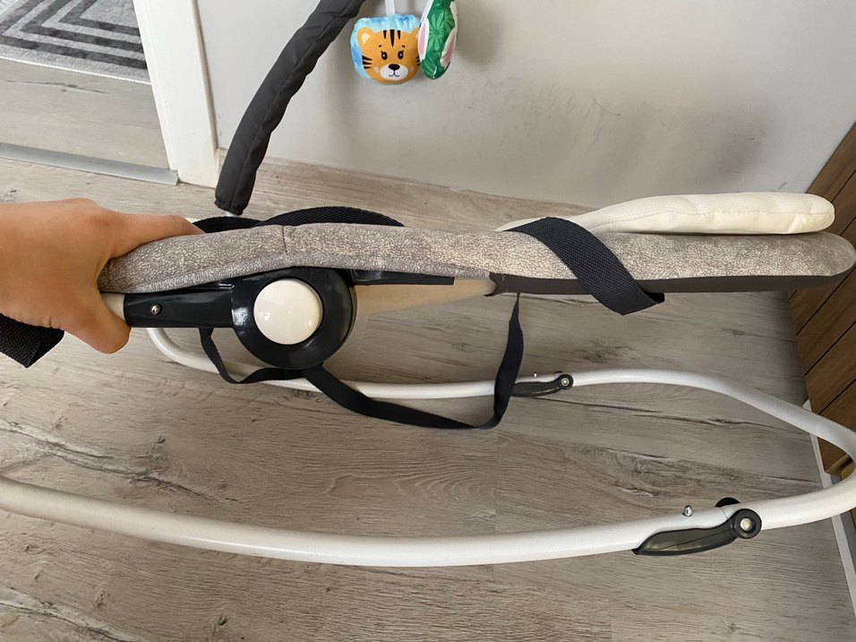 Yumuşak kumaş oturağı ve asılı oyuncaklarıyla gri bebek ana kucağı bebeklerin oturmasına öğrenmesine destek olur.