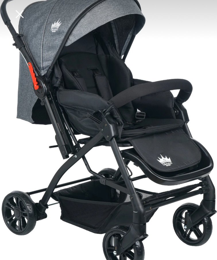 Gri renkli bebek arabası, sağlam iskelet, ayarlanabilir tente ve emniyet kemerli konforlu oturma yeri sunar. Altında saklama sepeti ve ön döner tekerlekleri vardır. Çift yönlüdür bir ay kullandım yani en fazla üç defa sıfır sayılır