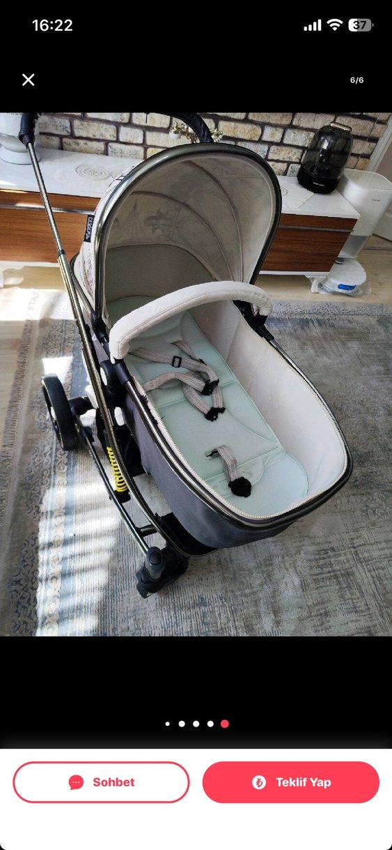 Gri bebek arabası, yumuşak dolgulu iç kısmı ve koruyucu tente ile birlikte gelir. Emniyet kemerleri ve kolay hareket sağlayan sağlam tekerlekli çerçeve bulunur. Ürünün puseti ve fermuarlı ayak örtüsü yok İstanbul içi elden teslimdir.