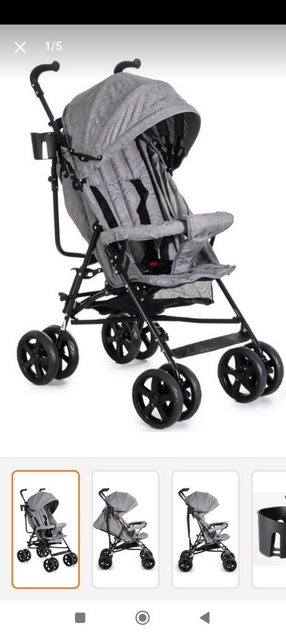 Gri Bebek Arabası Hafif ve Katlanabilir
