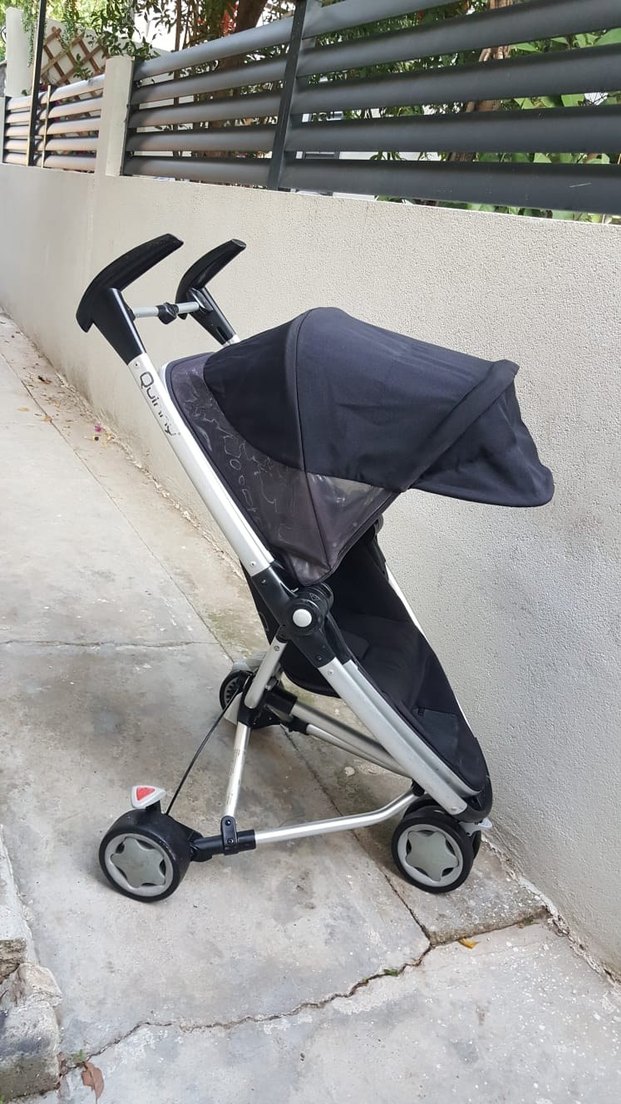 Gri renkli bebek arabası, katlanabilir yapıya ve gölgelik tenteye sahiptir. Hafif iskeletli ve dört tekerlekli tasarımıyla kolay kullanım sağlar.