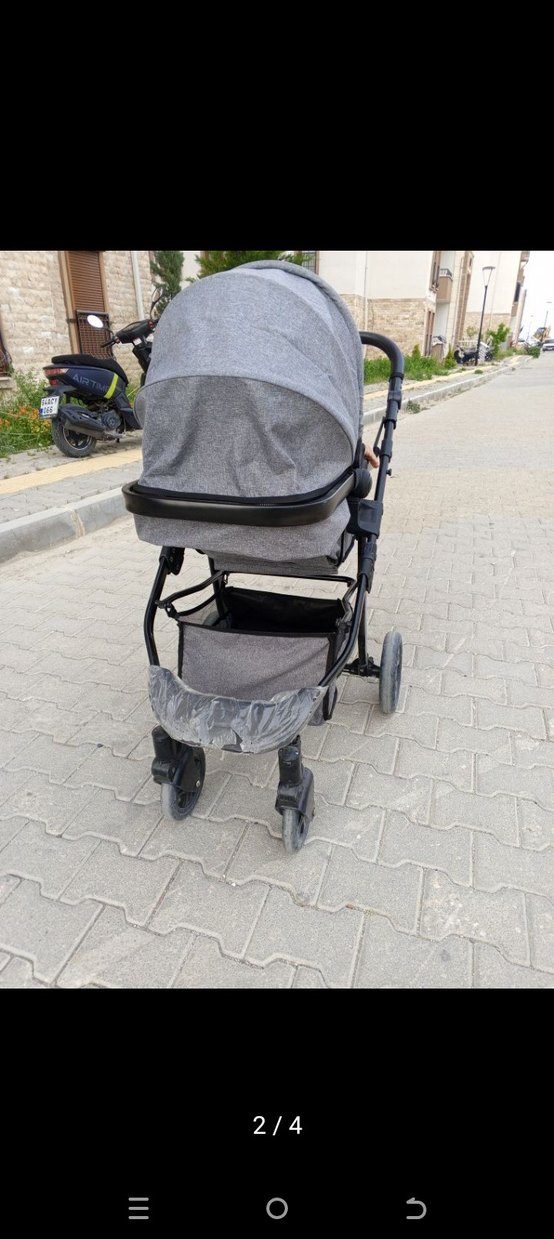 Gri bebek arabası, katlanabilir yapıya ve hafif çerçeveye sahip olup geniş tente ve saklama sepeti içerir.puset dahildir kış ayına denk geldiği için fazla kullanılmadı sıfır ayarında sadece tozlu olabilir