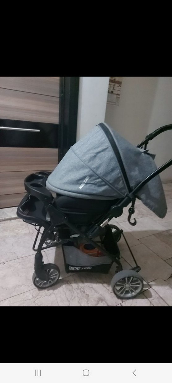 Gri renkli bebek arabası katlanabilir yapıya, tente ve alt kısmında saklama sepetine sahiptir. Yumuşak ve rahat oturma alanı ile sağlam tekerlekler bulunur.