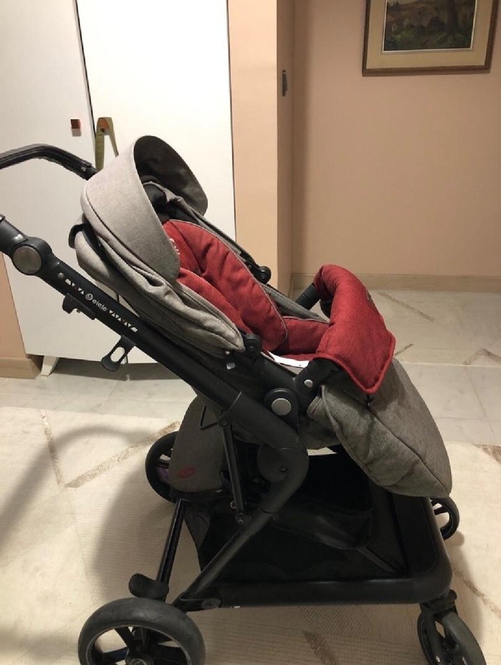 Gri Bebek Arabası Kırmızı İç Yastıklı