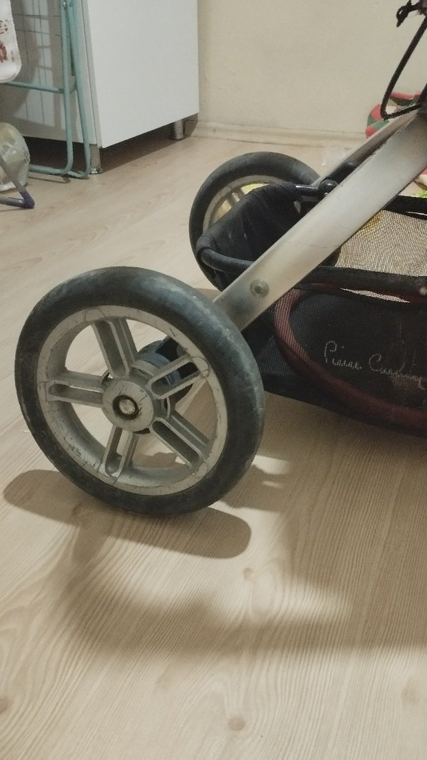 Gri bebek arabası tekerleği, sağlam çerçeve ve dayanıklı lastik ile pürüzsüz hareket sağlar. Çeşitli zeminler için uygundur. elimde iki ön ve bir arka tekerlek var iskele kırıldığı için satıyorum