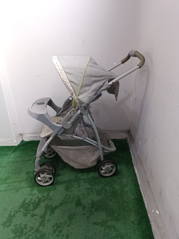 Gri bebek arabası, rahat oturma yeri, ayarlanabilir tente ve alt kısmında saklama sepeti içerir. Pürüzsüz tekerlekleri ve kolay itme için tasarlanmış tutacağı vardır. Hiçbir sorun sıkıntısı yok tertemiz sağlamdır alabilirsiniz bende birsürü bebek arabası var sayfama bakabilirsiniz