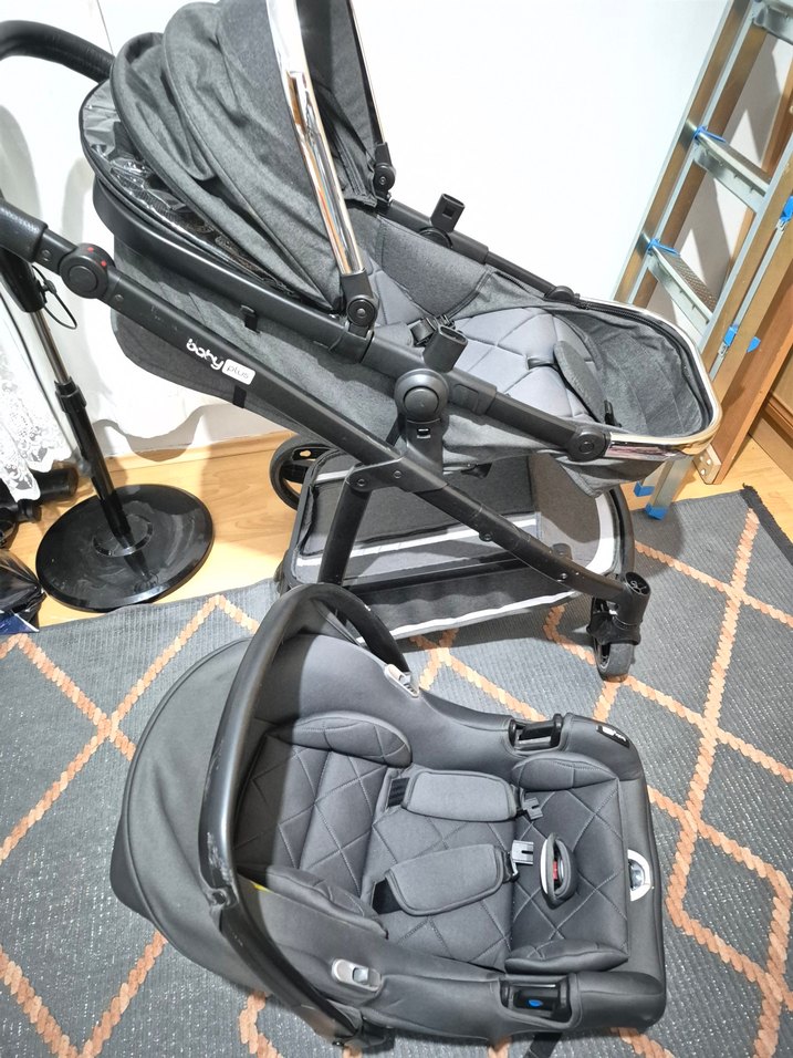 Gri bebek arabası ve uyumlu taşıma koltuğu, yastıklı oturma alanı ve ayarlanabilir tente ile konfor sağlar. Emniyet kemeri ve sağlam iskelet mevcuttur. neredeyse hiç kullanılmadı.Yirtik leke vb birşey yoktur.ayri ayrı almak isteserseniz ilan açarım.