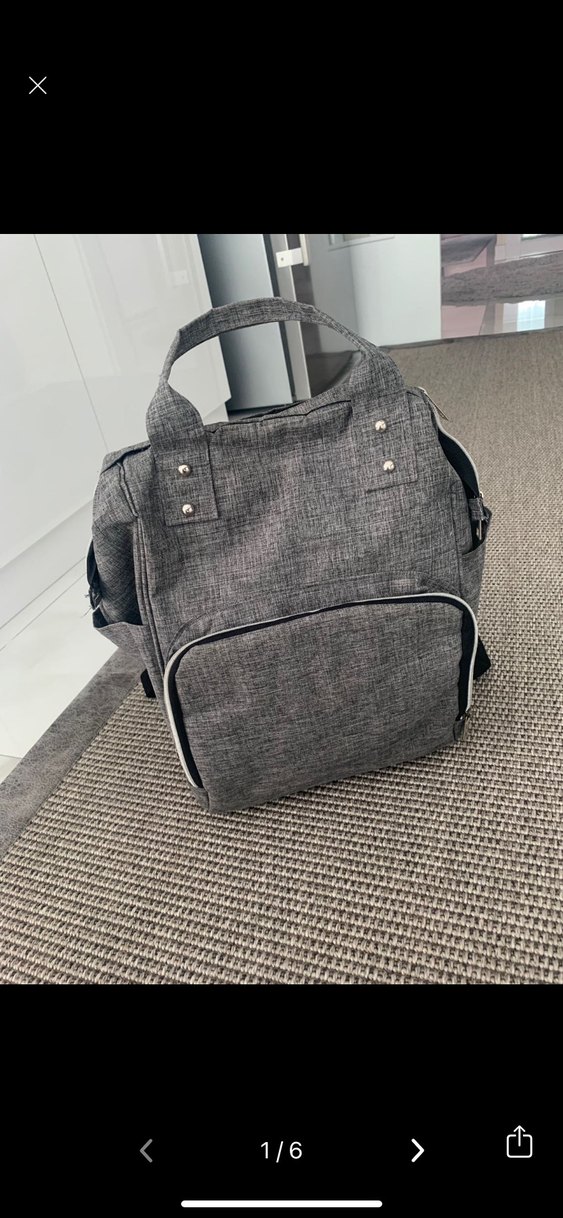 Gri renkte, geniş ana bölmeli ve ön cepli bebek bakım çantası. Dayanıklı saplarıyla kullanışlıdır.