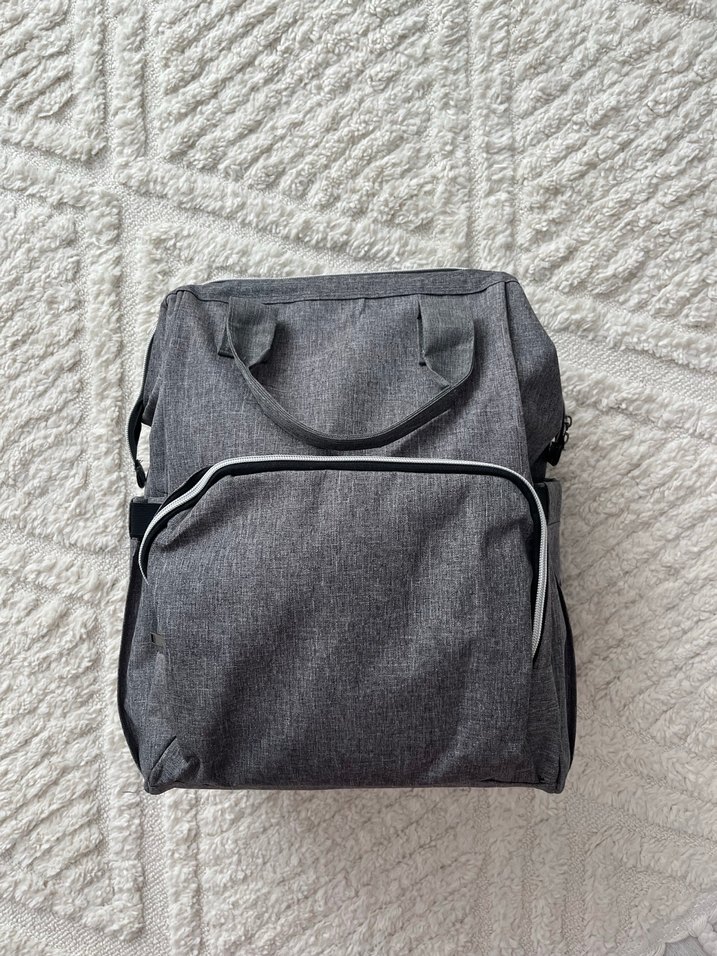 Gri renkte, çok bölmeli ve sağlam saplı bebek bakım çantasıdır. Desensiz, sade bir tasarıma sahiptir.