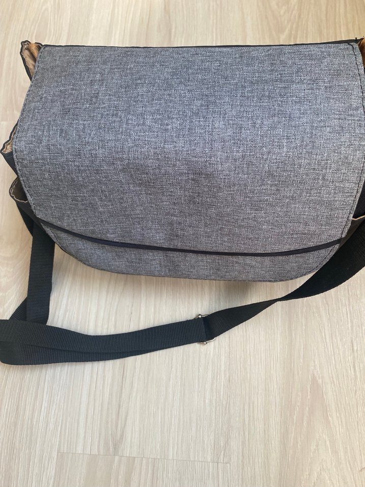 Ayarlanabilir omuz askılı, desensiz gri bebek bakım çantası. Çok kullanışlı, yeni ayarında. Hem arabada hem kolda kullanılabilir.