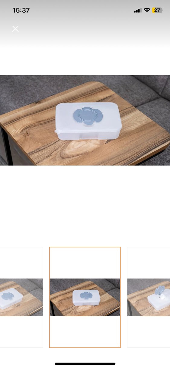 Gri renkte, kapağı güvenli bebek bezi mendili kutusu, mendillerin taze kalmasını ve kolay erişimi sağlar. İlk 6 ay için fazlasıyla kullanışlı Minik bi kapağı açma yerinde deformesi vardır onun dışında sorunu yoktur