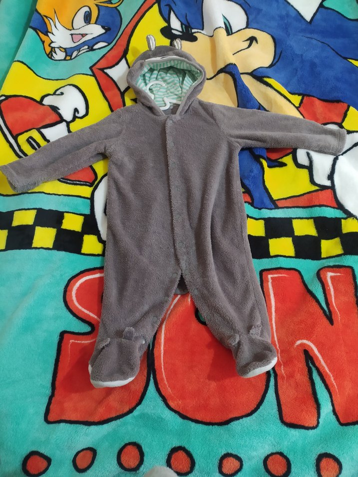 Gri renkte, yumuşak ve sıcak kumaştan fermuarlı bebek erkek tulumu. Sokak stili ve desensiz sade tasarım.