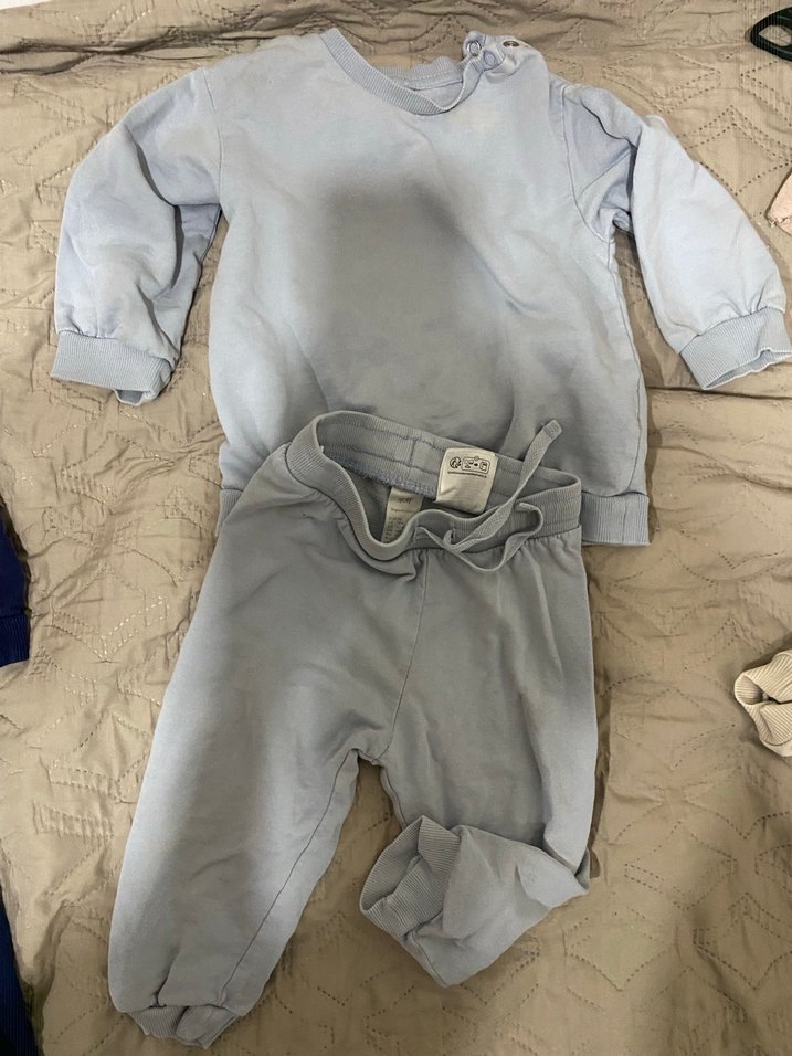 Gri renkli bebek erkek takımı, uzun kollu bisiklet yaka sweatshirt ve rahat pantolondan oluşur. Yumuşak ve sıcak kumaştan olup, desen içermeyen normcore tarzıyla rahat bir şıklık sunar.