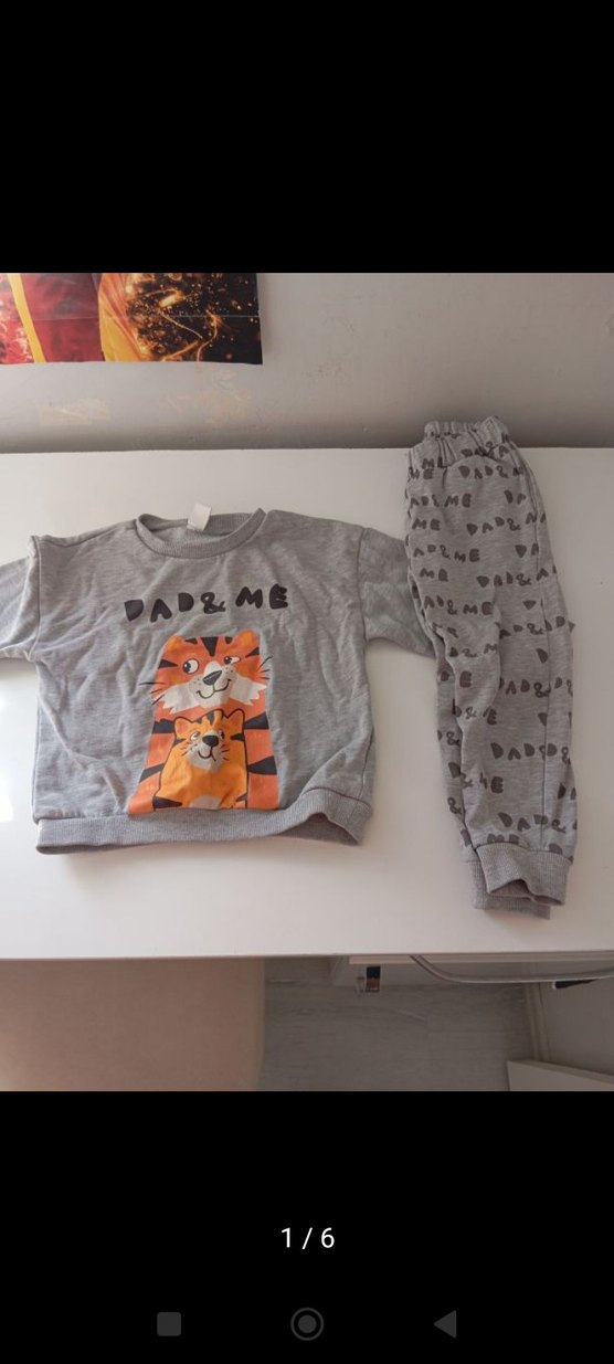 Gri renkli, uzun kollu ve yuvarlak yakalı sweatshirt ile baskılı pantolondan oluşan bebek erkek takımı. Yumuşak ve sıcak kumaştan, rahat ve şık sokak tarzı sunar. Sweatshirt üzerinde 'DAD & ME' yazısı ve sevimli kaplan baskısı bulunur.