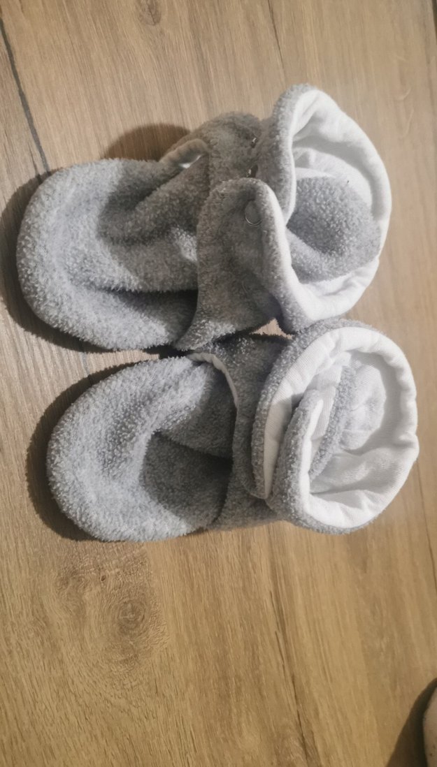 Yumuşak kürk görünümlü kumaştan yapılmış gri erkek çocuk ev terliği, kolay kullanım için velcro kapamalı. Desensiz, rahat ve sade tasarım. 18-24 aylık bebekler içindir.