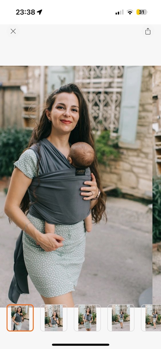 Gri renkte, yumuşak kumaştan yapılmış bebek kangurusu sling, bebeğinizi rahat ve güvenli taşımanızı sağlar. Neko markadır az kullanıldı