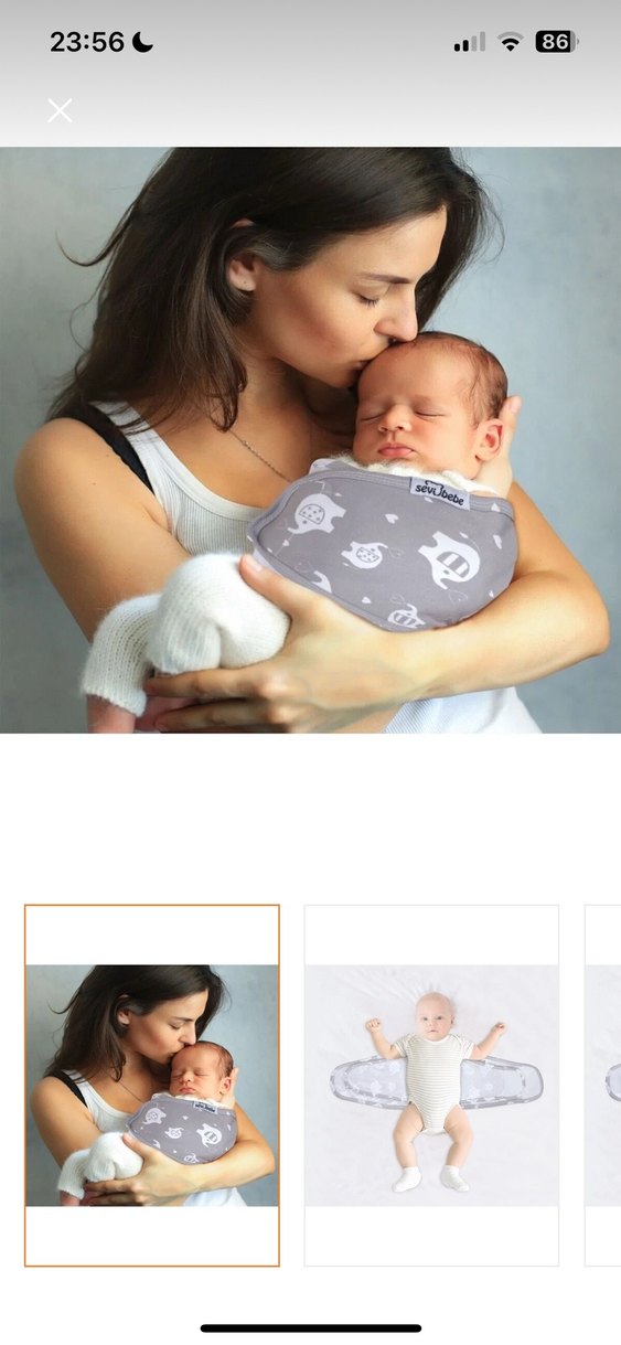 Yumuşak kumaşlı, sevimli desenli gri bebek kanguru sling, bebeğinizi güvenle taşımak için konforlu destek sağlar.