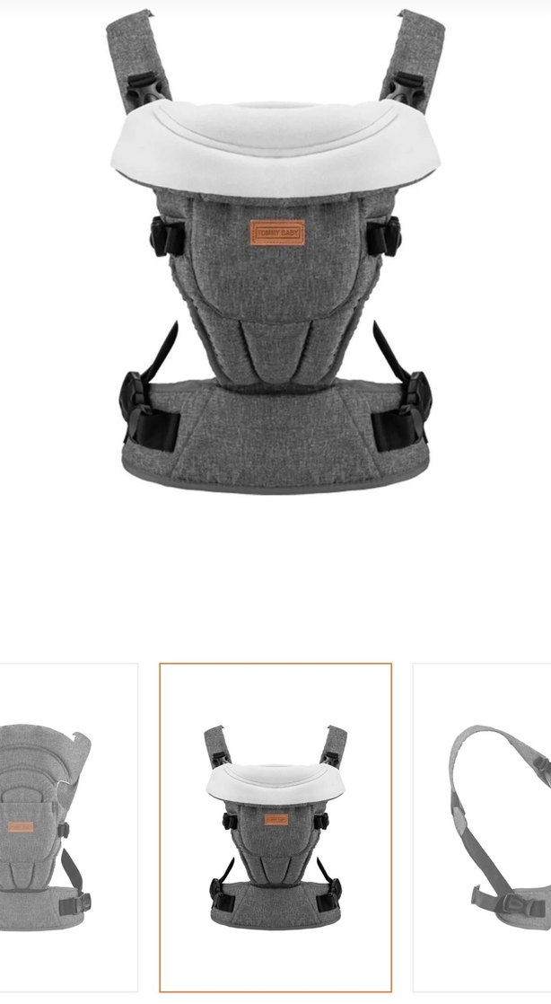 Ayarlanabilir kayışlara ve rahat taşıma için dolgulu desteğe sahip gri bebek kanguru taşıyıcı. Güvenli ve ergonomik kullanım sağlar.