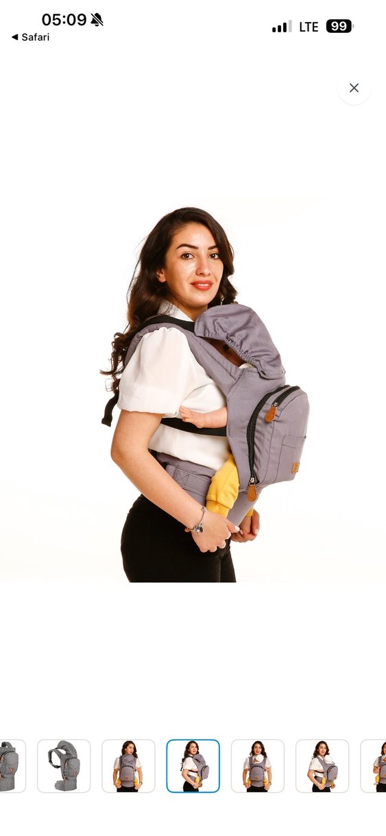 Ayarlanabilir askıları ve ön cebi olan gri bebek kanguru taşıyıcı, konforlu ve kullanışlıdır. Bebeklerin güvenle taşınmasını sağlar.