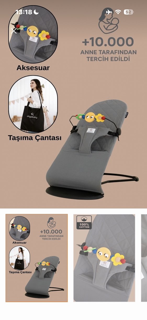 Yumuşak pamuklu gri bebek kanguru, taşıma çantası ve renkli oyuncak aksesuarı ile birlikte. 10.000'den fazla anne tarafından tercih edildi. Sadece aksesuarı yok