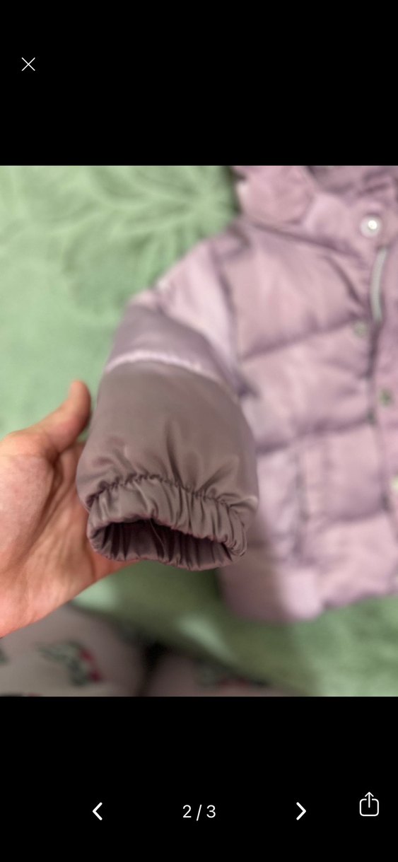 Bu bebek kışlık mont, kapüşonlu ve fermuarlı, fit kesimlidir. Sentetik kumaştan yapılmış, gri renkte, günlük kullanım için uygundur. ❄️ 3-6 aylıktır temizden farksız 2 kez giyilmiştir