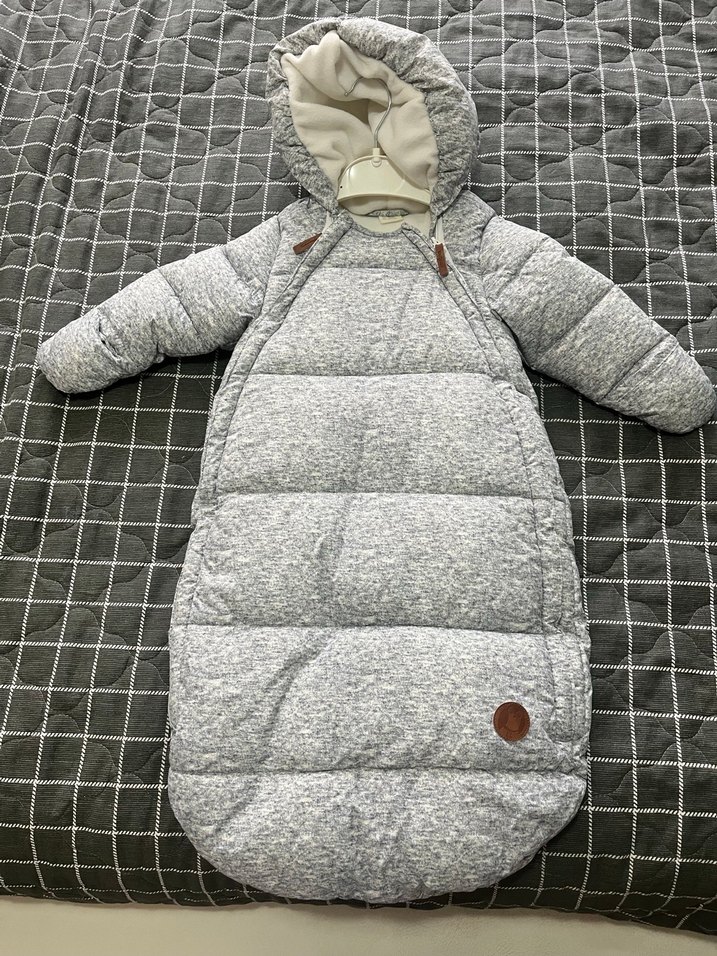 Gri renkte, fermuarlı ve kapüşonlu, yumuşak ve sıcak kumaştan yapılmış bebek kayak tulumu. ❄️. Sıfır gibi bir iki kez ancak kullandık çok kullanışlı sıcacık tutuyor bedene 0-3 ay yazdım ama baya kullanılıyor 7-8 aylıkkende kullanılır uzun çünkü