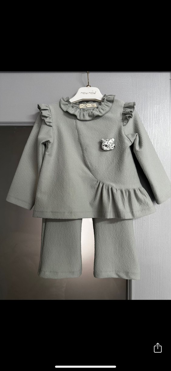 Gri Bebek Kız Takımı Fırfırlı Nakışlı