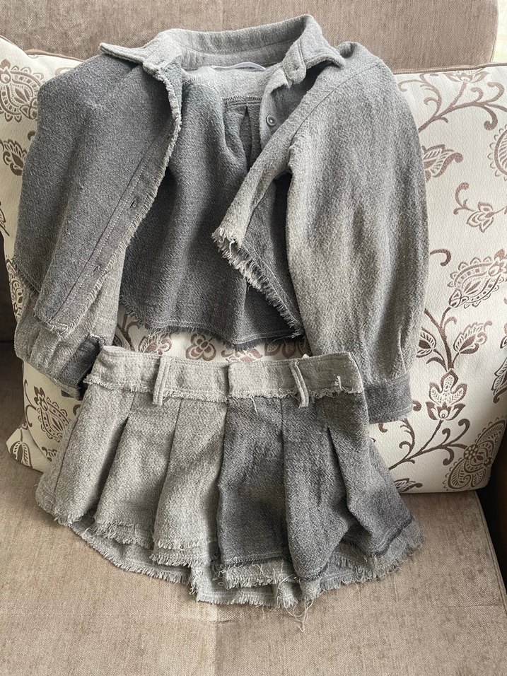 Yumuşak ve desensiz kumaştan yapılmış, uzun kollu ve fırfır detaylı gri bebek kız takımı. Katmanlama için uygundur.