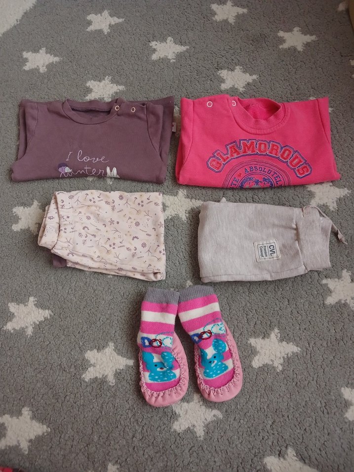Gri uzun kollu üst, yumuşak pantolon ve renkli çoraplardan oluşan bebek kız takımı. Rahat ve konforlu kullanım sağlar.